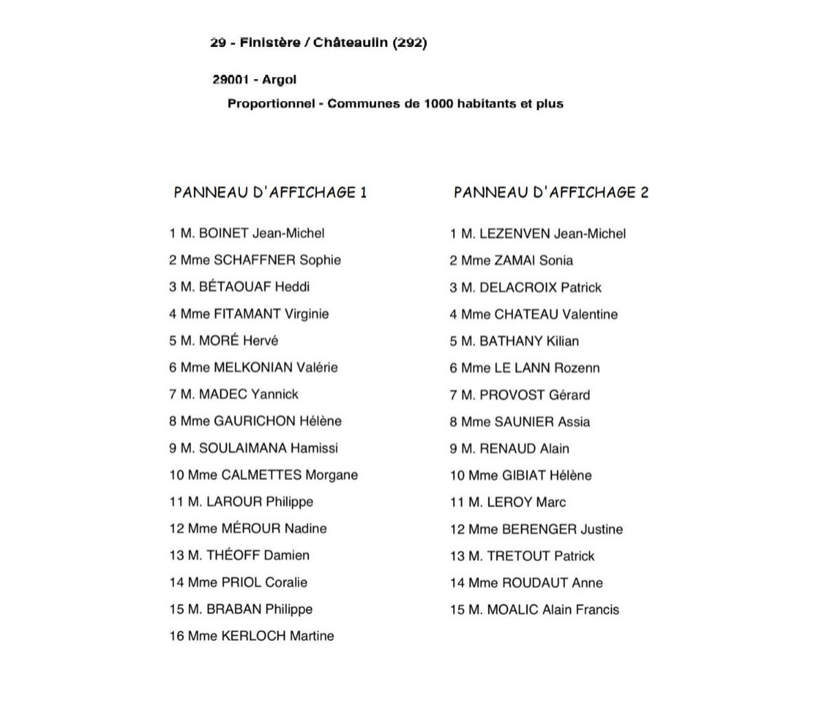 La liste « Vivre ensemble à Argol » portée par Jean-Michel BOINET au centre
